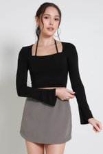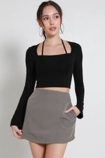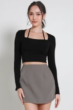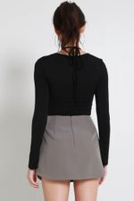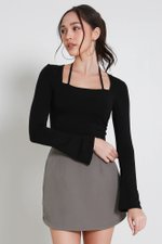 Laurelle Self Tie Long Sleeve Top (Black)