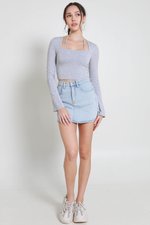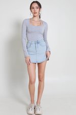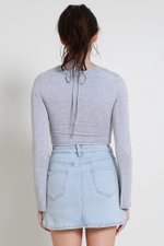 Laurelle Self Tie Long Sleeve Top (Heather Grey)