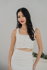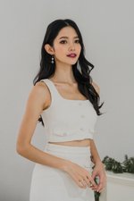 Laylin Pearl Sleeveless Padded Tweed Top (White)