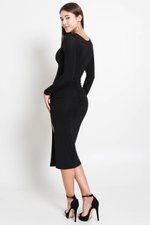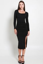 Leith Scoop Neck Long Sleeve Dress (Black)