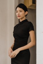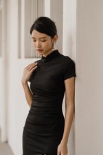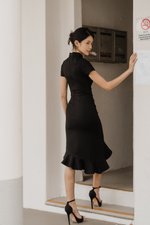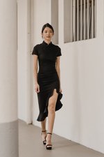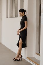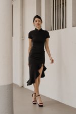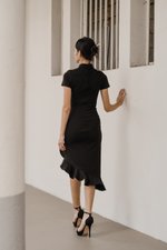 Leyue Ruched Ruffle Dress (Black)