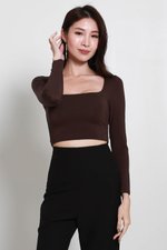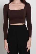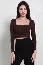 Lily Scoop Neck Long Sleeve Top (Chocolate Brown)