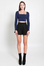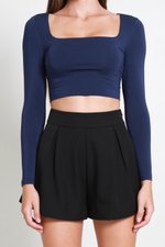 Lily Scoop Neck Long Sleeve Top (Navy)