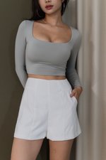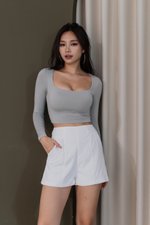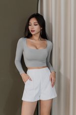 Lily Scoop Neck Long Sleeve Top (Stone Grey)