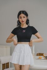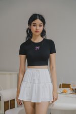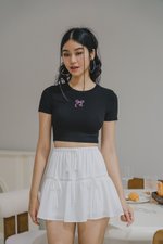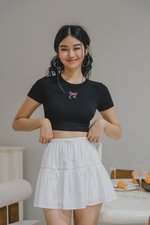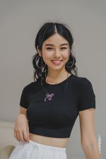 *Lite* Aly Ribbon Embroidered Top (Black/Baby Pink Ribbon)