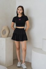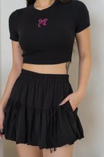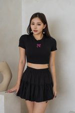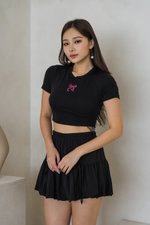 *Lite* Aly Ribbon Embroidered Top (Black/Barbie Pink Ribbon)