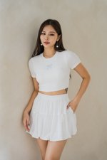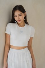 *Lite* Aly Ribbon Embroidered Top (White/Baby Blue Ribbon)