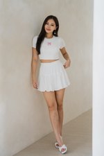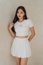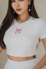 *Lite* Aly Ribbon Embroidered Top (White/Barbie Pink Ribbon)