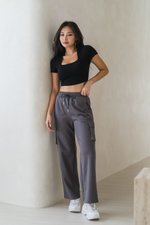 *Lite* [CROPPED] Lyla Queen Anne Top (Black)