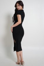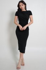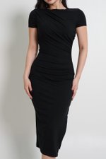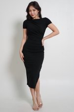 *Lite* Kayla Ruch Sleeved Padded Midi Dress (Black)