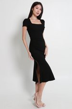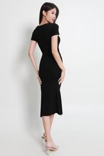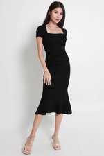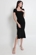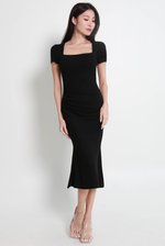 *Lite* Leshia Sleeved Mermaid Ruched Dress (Black)