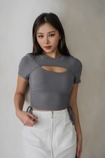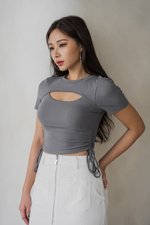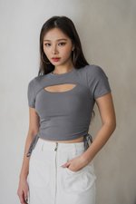 *Lite* Tressa Peekaboo Padded Ruch String Top (Ash Steel Blue)
