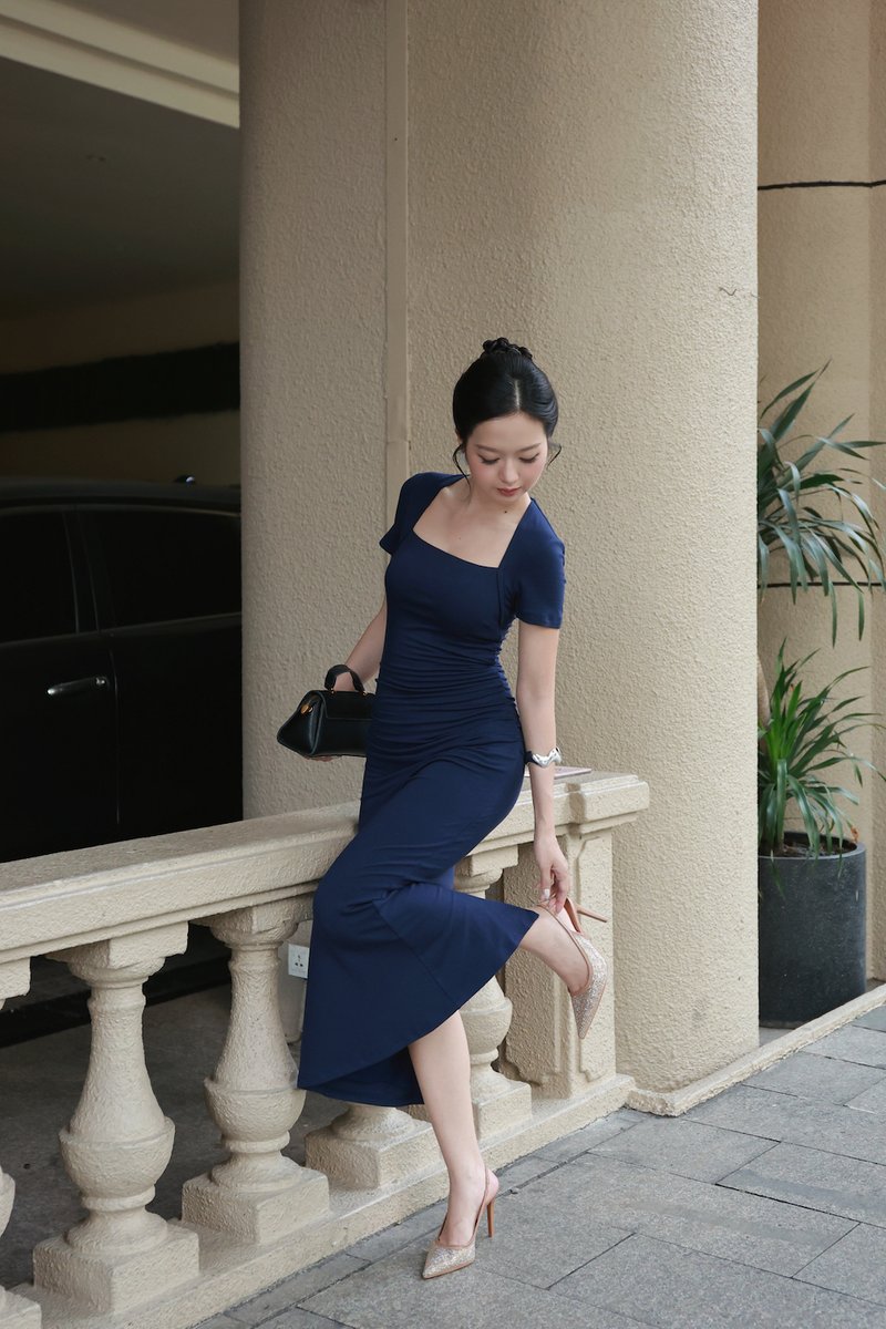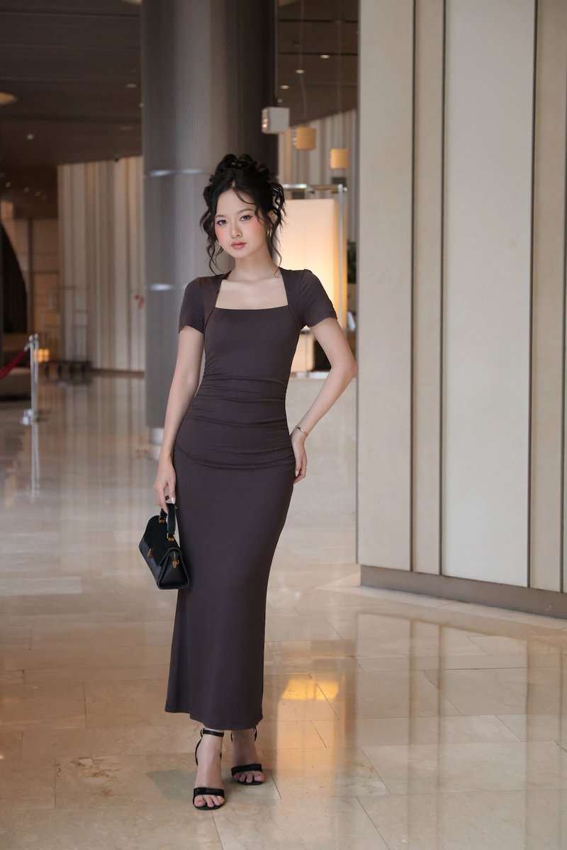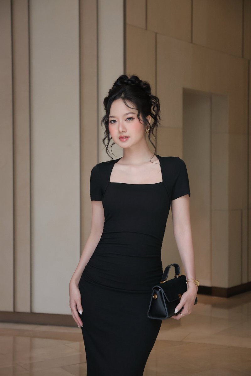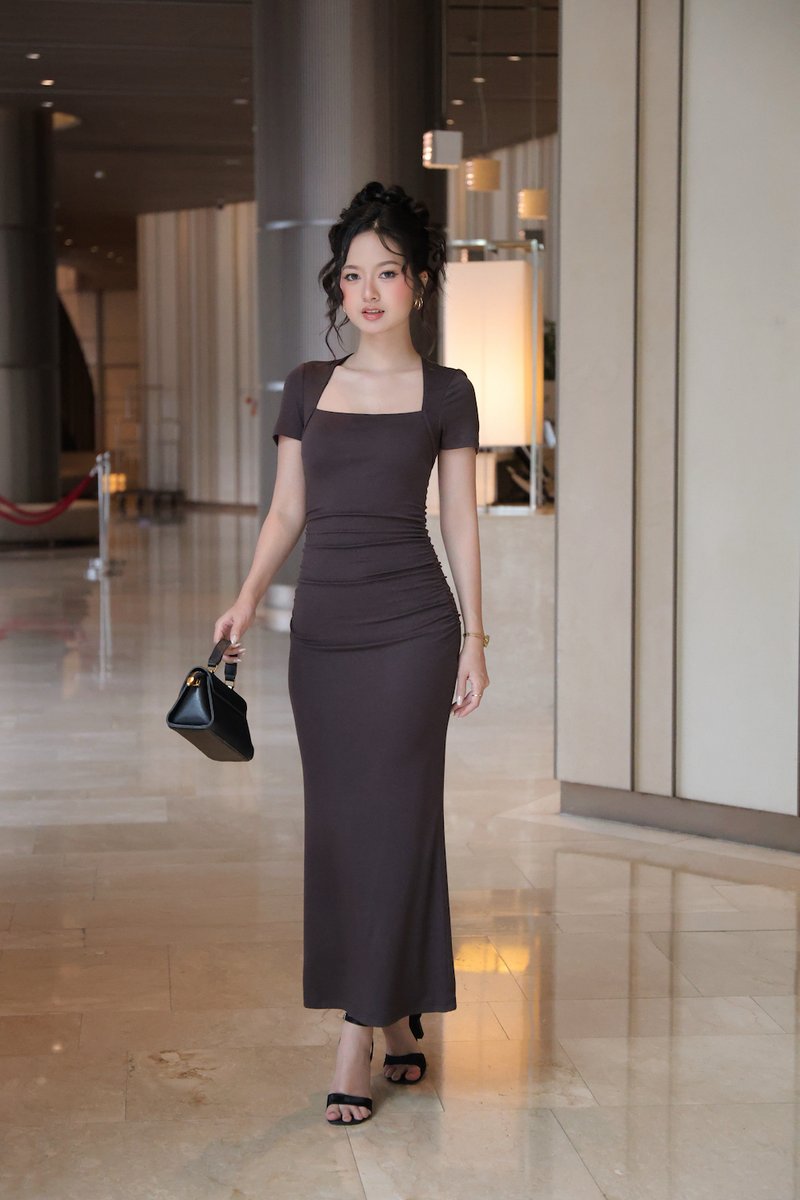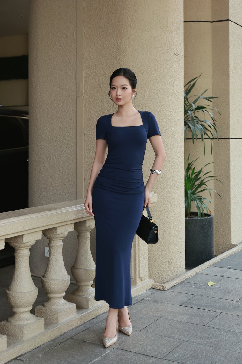 *Lite* Zayda Ruched Padded Midi Dress