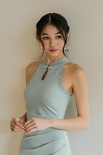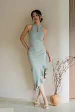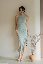 *Luxe* Shen Padded Cheongsam Ruffle Slit Dress (Jade Green)