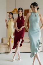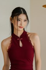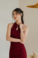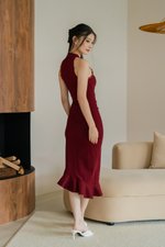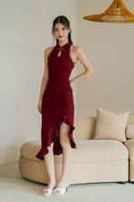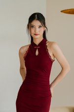 *Luxe* Shen Padded Cheongsam Ruffle Slit Dress (Maroon)