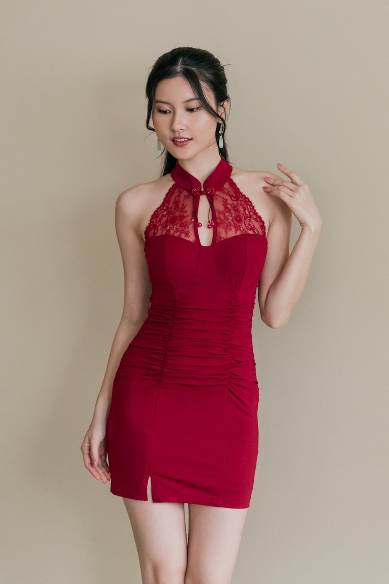 *Luxe* Yang Lace Padded Qipao Romper Dress
