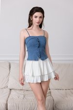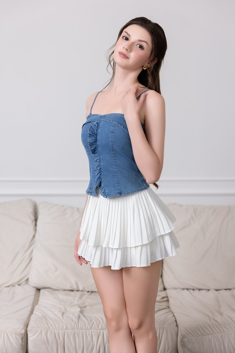 Lydia Ruffle Denim Padded Top (Light Wash)