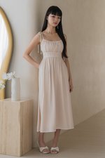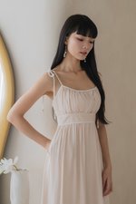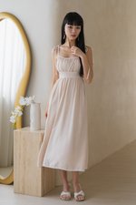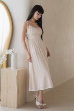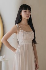 Lynvia Padded Self Tie Contrast Midi Dress (Soft Pink)