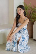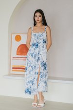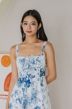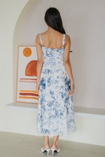Madilyn Ribbon Tie Back Midi Dress (Dark Blue Floral)