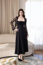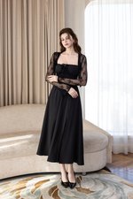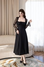 Madilyn Ribbon Tie Back Midi Dress V2 (Black Solid)