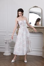 Madilyn Ribbon Tie Back Midi Dress V2 (Rosewood Floral)