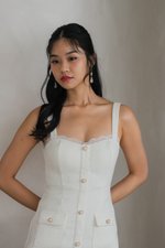 Merlin Sweetheart Padded Tweed Romper Dress (Ivory)