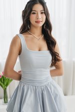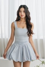 Micole Padded V Back Bubble Romper Dress (Soft Blue)