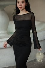 Millie Mesh Long Sleeves Midi Dress (Black)