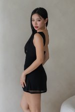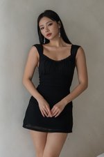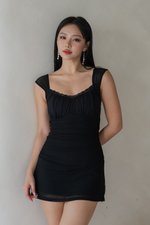 Myrielle Ruched Mesh Padded Romper Dress (Black)
