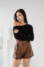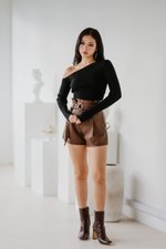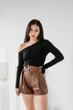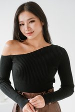 Nebula One Shoulder Knit Top (Black)