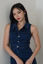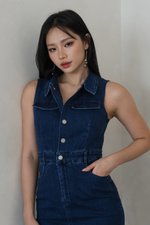 Novir Button Padded Denim Dress (Dark Wash)