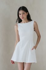 *Premium Luxe* Aeiris Padded Boat Neck Romper Dress (White)