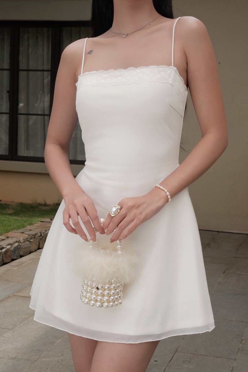 *Premium Luxe* Elaine Lace Mesh Ballerina Dress (White)