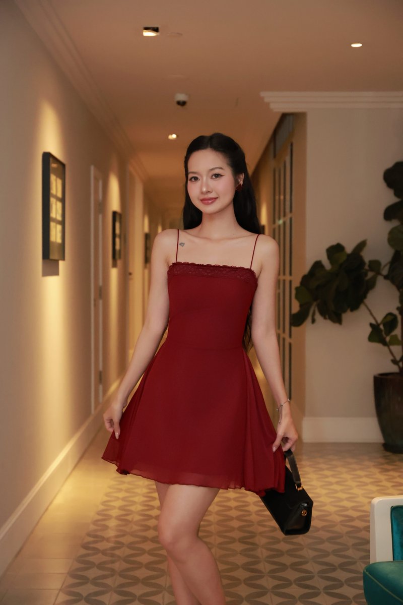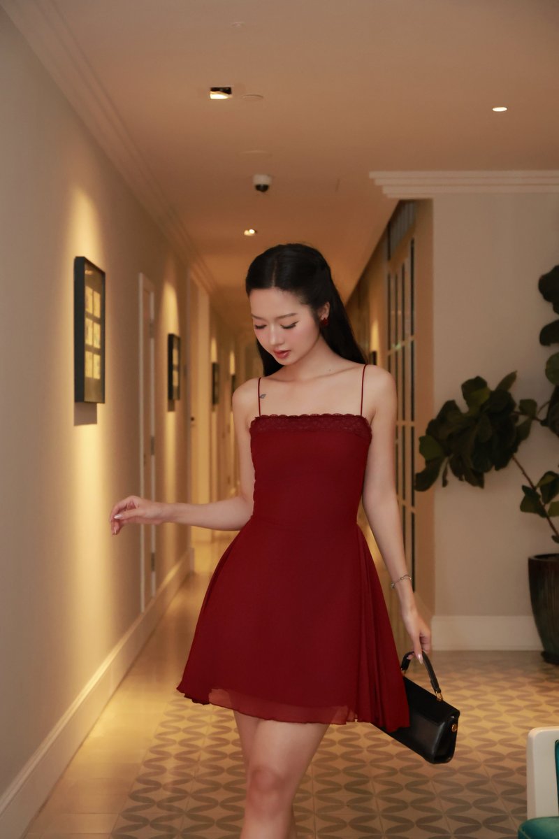 *Premium Luxe* Elaine Lace Mesh Ballerina Dress (Red)