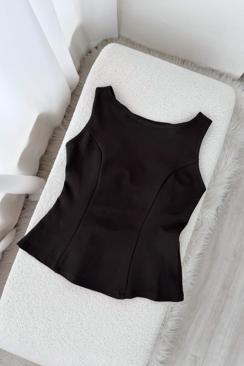 *Premium Luxe* Yuri Boat Neck Flare Padded Top