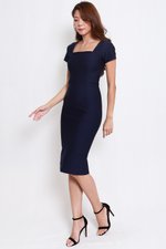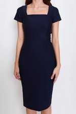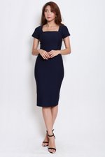 *Premium* Square Neck Sleeved Midi Dress (Navy)