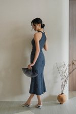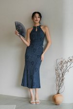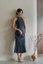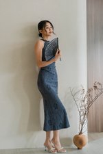 Qiu Distressed Floral Midi Mermaid Skirt (Gunmetal)