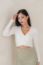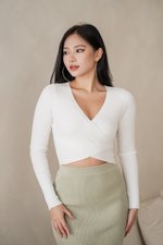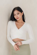Avri Wrap Knit Top (White)