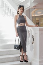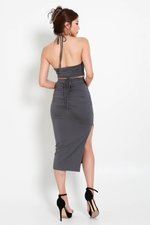 Jill Ruched Midaxi Skirt (Gunmetal)