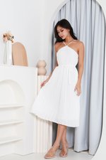 Gisela Halter Pleated Dress (White)