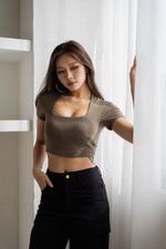 *Lite* [CROPPED] Lyla Queen Anne Top (Olive)