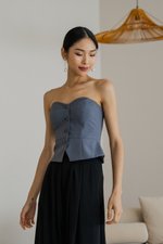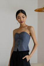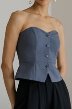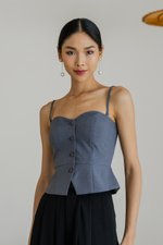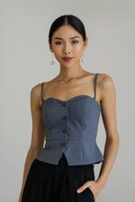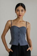 Adalynn button Up Padded Top (Gunmetal Blue)