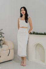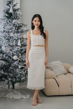 Laren Pearl Midi Tweed Skirt (White)