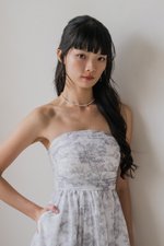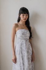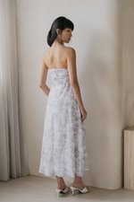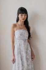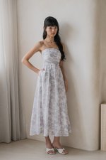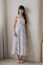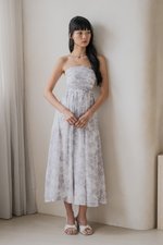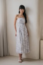 Edith Ruched Midi Dress (Dove Grey Floral)