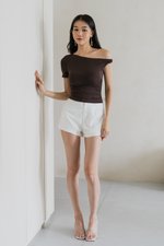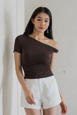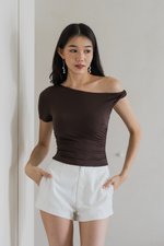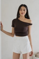Zora One Shoulder Padded Top (Chocolate Brown)