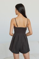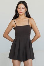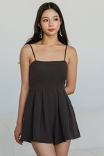 Lazier Pleated Romper (Double Espresso/BackZip)