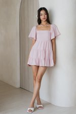 [SLEEVED] Kaelyn Padded Tier Romper Dress (Soft Pink)