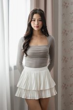 Jayla Ruched Long Sleeve Padded Top V2 (Etoupe)