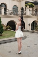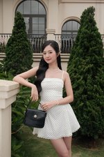 Paisley Overlap Lace Padded Dress (White Polka)