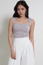 Ria Queen Anne Padded Ruched Top (Lilac Grey)